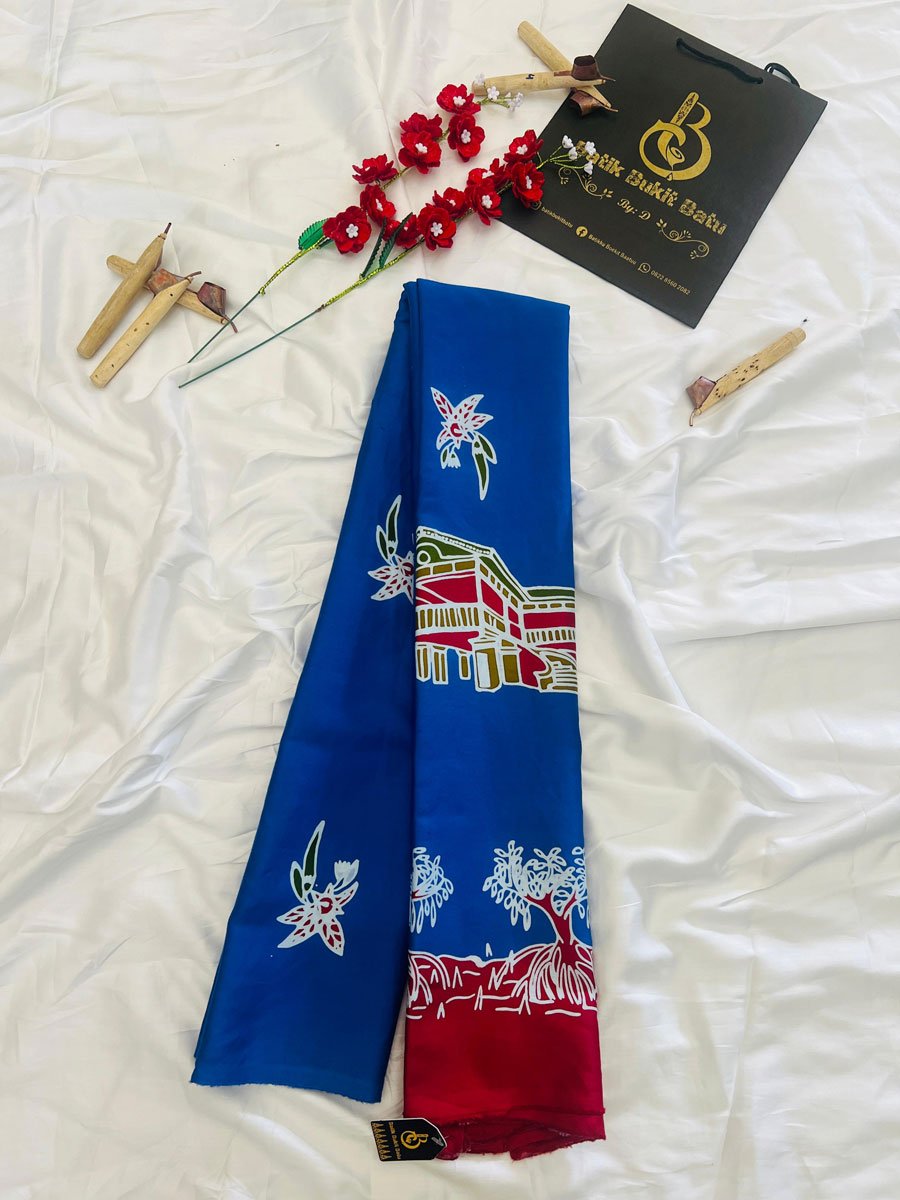 Motif Rumah Datuk Laksamana Raja Dilaut: Menatap motif ini seolah membawa kita kembali ke masa kejayaan maritim Melayu. Rumah Datuk Laksamana Raja Dilaut adalah sebuah monumen arsitektur bersejarah yang menjadi saksi bisu kegagahan para pahlawan laut. Mengabadikannya dalam sehelai batik adalah sebuah penghormatan. Detail ukiran khas Melayu, bentuk atap limas, dan struktur rumah panggungnya ditranslasikan dengan indah ke atas kain, menjadikannya simbol warisan, kepemimpinan, dan akar sejarah yang kuat. Memakai batik dengan motif ini serasa menyelimuti diri dengan keagungan masa lalu.