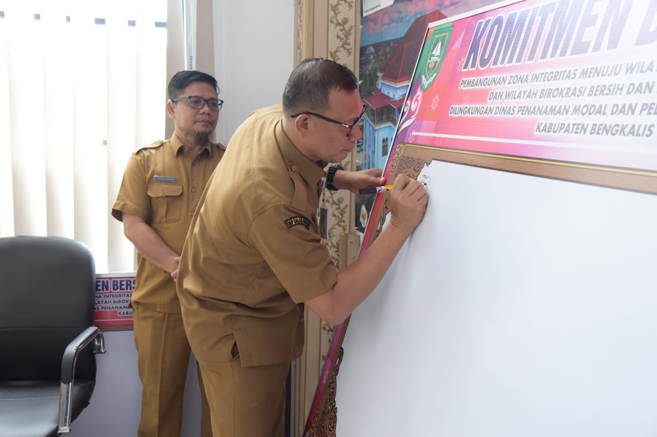 Pencanangan Pembangunan Zona Integritas Dinas Penanaman Modal dan Pelayanan Terpadu Satu Pintu Kabupaten Bengkalis menuju Wilayah Bebas Korupsi dan Wilayah Birokrasi Bersih dan Melayani.