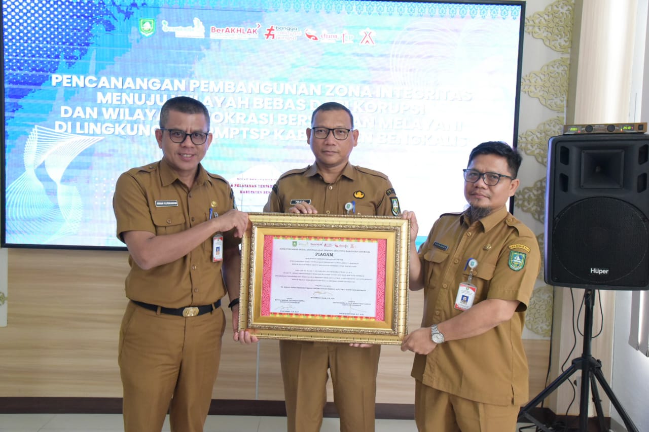 BENGKALIS - Dalam upaya memperkuat tata kelola pemerintahan yang bersih, transparan, dan melayani, Dinas Penanaman Modal dan Pelayanan Terpadu Satu Pintu (DPMPTSP) Kabupaten Bengkalis melakukan Pencanangan Pembangunan Zona Integritas (ZI) menuju Wilayah Bebas dari Korupsi (WBK) dan Wilayah Birokrasi Bersih dan Melayani (WBBM), Selasa, 14 Oktober 2025.
