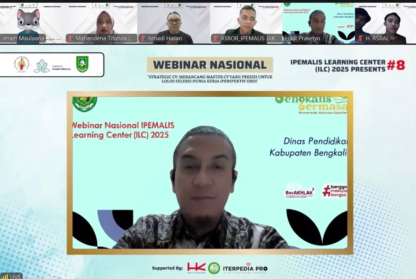 JAKARTA – Sebagai bentuk dukungan terhadap program Pemerintah Kabupaten Bengkalis dalam meningkatkan kualitas sumber daya manusia yang unggul dan berdaya saing, Ikatan Pemuda Mahasiswa Kabupaten Bengkalis (IPEMALIS) Jakarta melalui program IPEMALIS Learning Centre (ILC) kembali menggelar Webinar Nasional bertajuk “Strategic CV: Merancang Master CV yang Presisi untuk Lolos Seleksi Dunia Kerja (Perspektif HRD)” Jumat, 17 Oktober 2025.