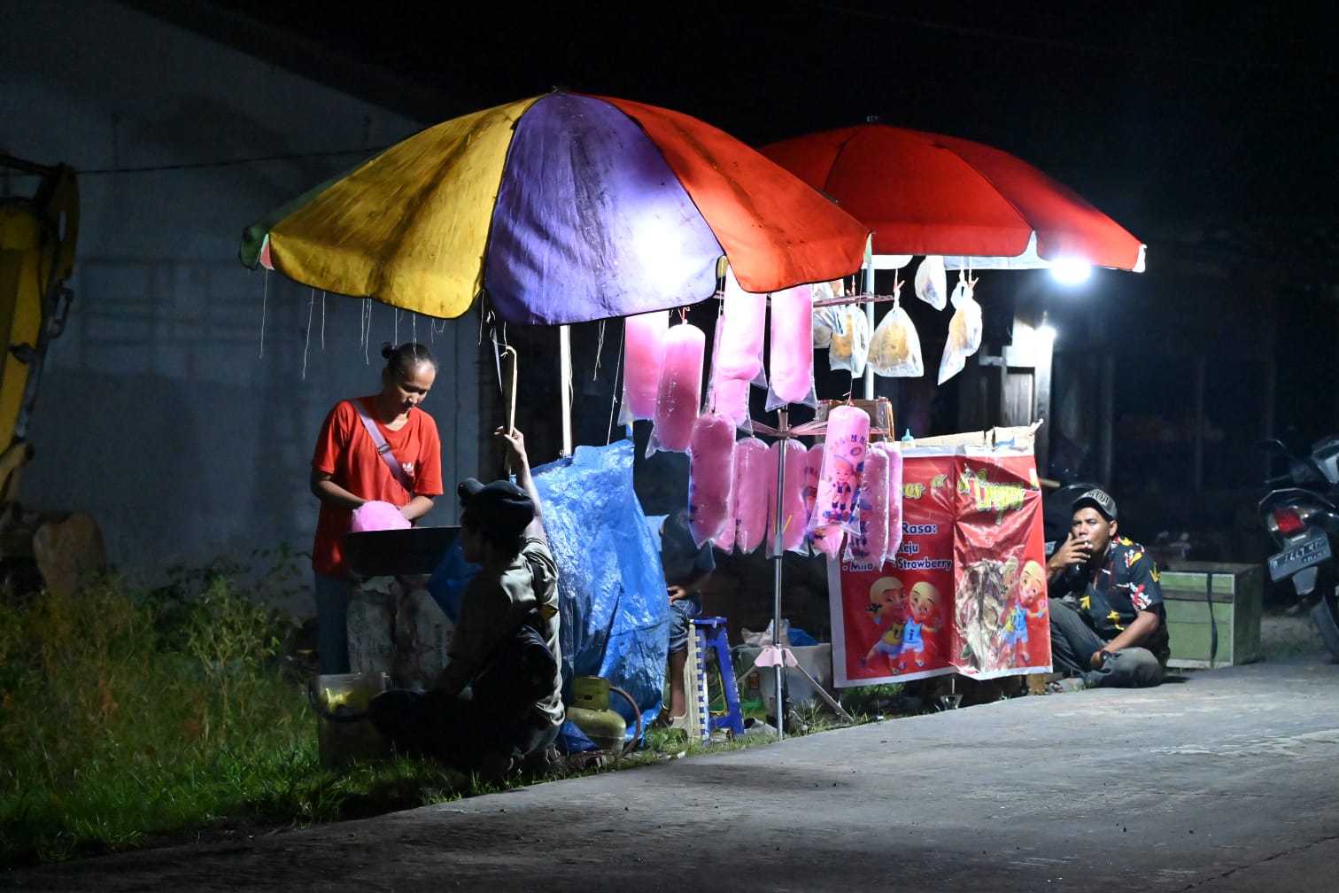 Tak hanya panggung utama yang semarak, suasana pasar malam di sekitar arena MTQ juga turut menggeliat. Beragam pedagang makanan, mainan anak, hingga pakaian diserbu pengunjung yang datang silih berganti.