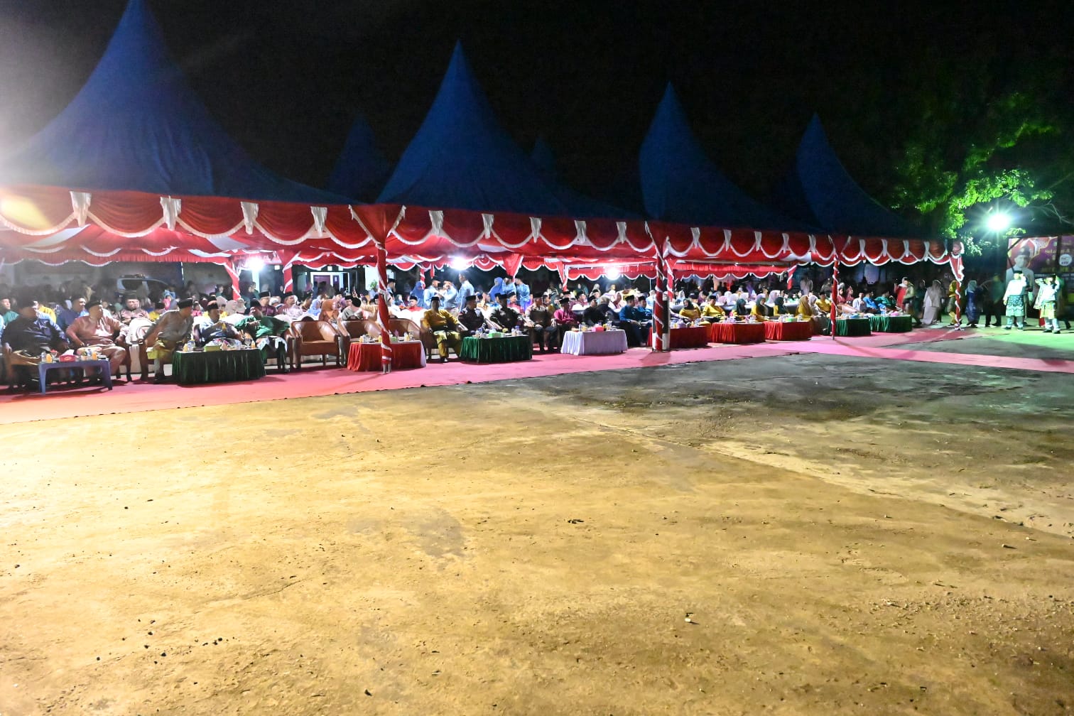 Sejak sore hari, ribuan warga mulai memadati area kegiatan. Arus manusia memenuhi jalan menuju lokasi acara, sementara pedagang kaki lima berjajar rapi di sekitar lapangan, menata aneka dagangan yang menambah semarak suasana malam penuh keberkahan itu.