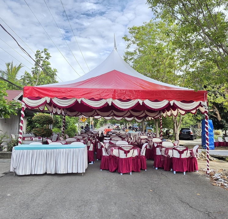 Satu Set Tenda Prasmanan (Rp350.000): Jaga sajian kuliner Anda tetap prima dan tertata apik. Tenda ini didesain untuk area hidangan, memberikan kenyamanan bagi para tamu saat menikmati santapan lezat yang telah Anda siapkan.