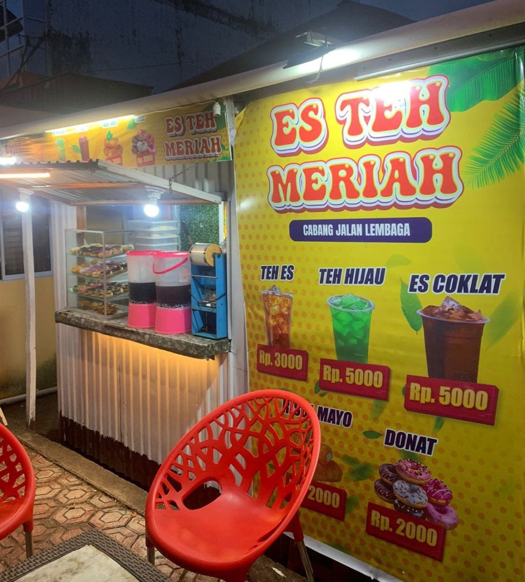 Siapa sangka, di tangannya, teh manis sederhana yang dibanderol seharga Rp3.000-an bisa terjual rata-rata 400 cup setiap harinya. Tak hanya itu, donat seharga Rp2.000-an ludes hingga 600 buah, bahkan seringkali lebih. Fenomena ini melahirkan satu nama yang kini kian akrab di telinga warga: Es Teh Meriah.