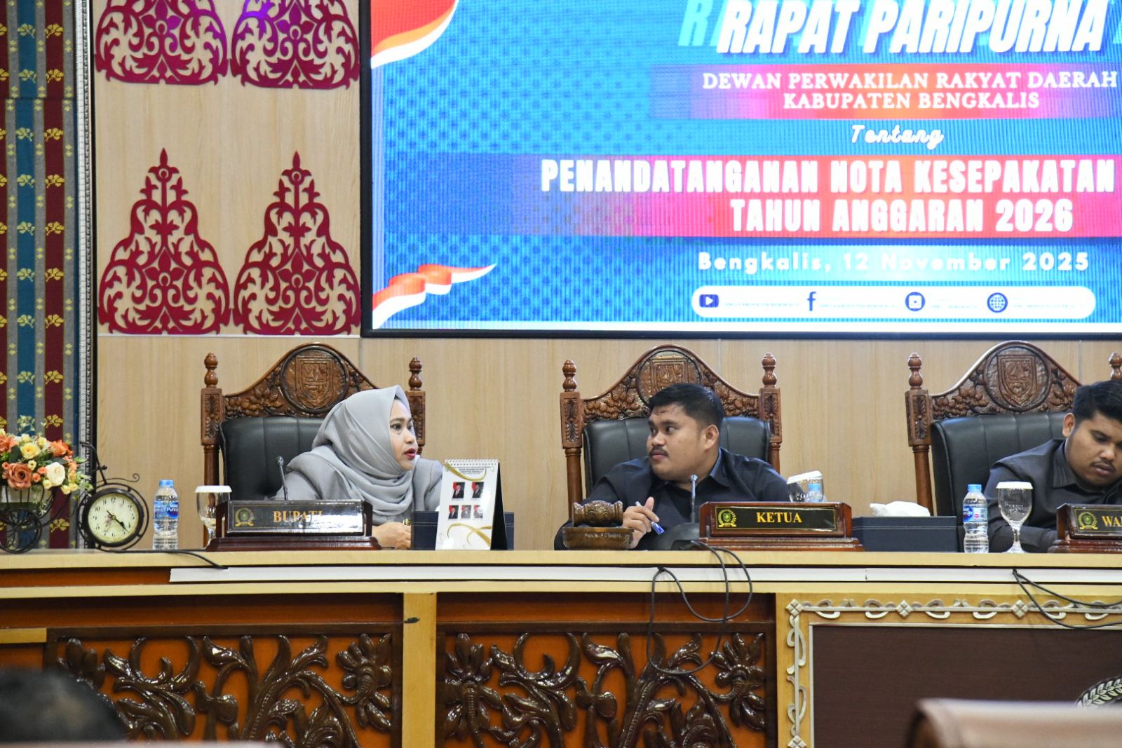 Kesepakatan ini ditandai dengan penandatanganan nota kesepakatan oleh Bupati Bengkalis Kasmarni, Ketua DPRD Bengkalis, Septian Nugraha bersama tiga Wakil Ketua DPRD Bengkalis, M. Arsya Fadillah, Hendrik Firnanda Pangaribuan, dan H. Misno, dalam Sidang Paripurna DPRD yang dihadiri 23 anggota DPRD dan para pejabat dilingkungan Pemerintah Kabupaten Bengkalis, Rabu, 12 November 2025.