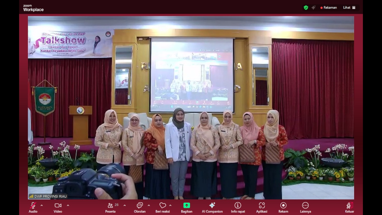 BENGKALIS — Dharma Wanita Persatuan (DWP) Kabupaten Bengkalis mengikuti Seminar Kesehatan sempena Hari Ulang Tahun ke-26 DWP Provinsi Riau yang digelar secara virtual, Rabu, 19 November 2025 di Ruang Hang Jebat, Kantor Bupati Bengkalis.