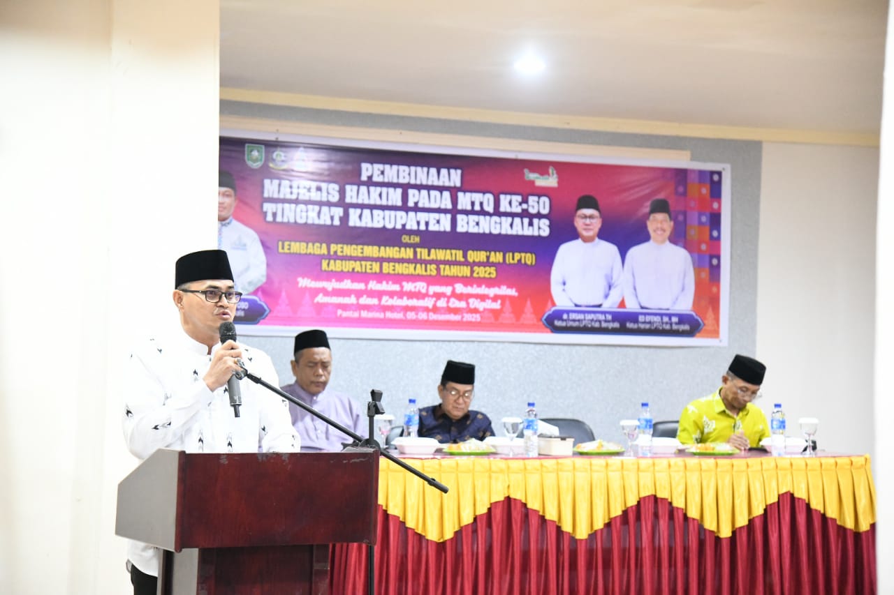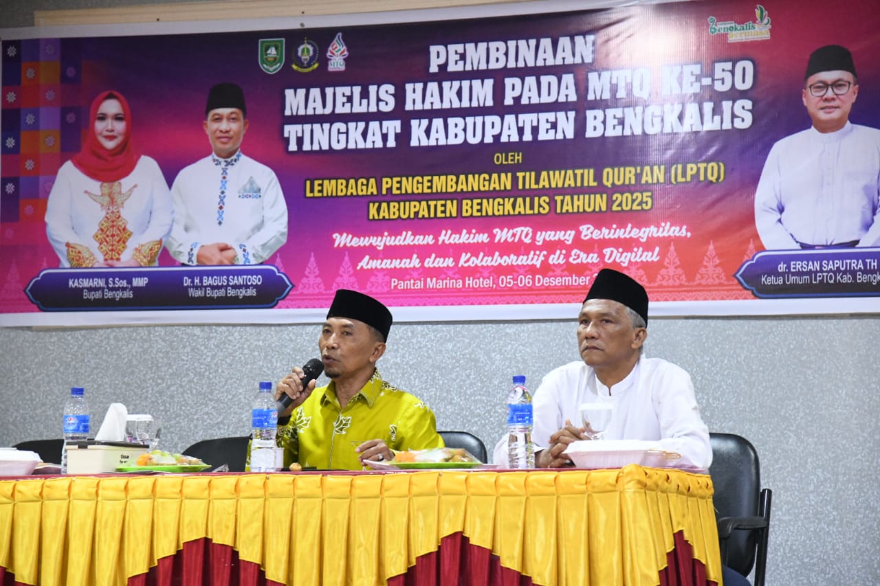 BENGKALIS – Menjelang pelaksanaan Musabaqoh Tilawatil Qur'an (MTQ) ke-50 tingkat Kabupaten Bengkalis yang akan diselenggarakan di Kecamatan Bandar Laksamana, Lembaga Pengembangan Tilawatil Qur'an (LPTQ) Kabupaten Bengkalis menyelenggarakan Pembinaan Majelis Hakim, di Hotel Marina Bengkalis, Jumat, 5 Desember 2025.