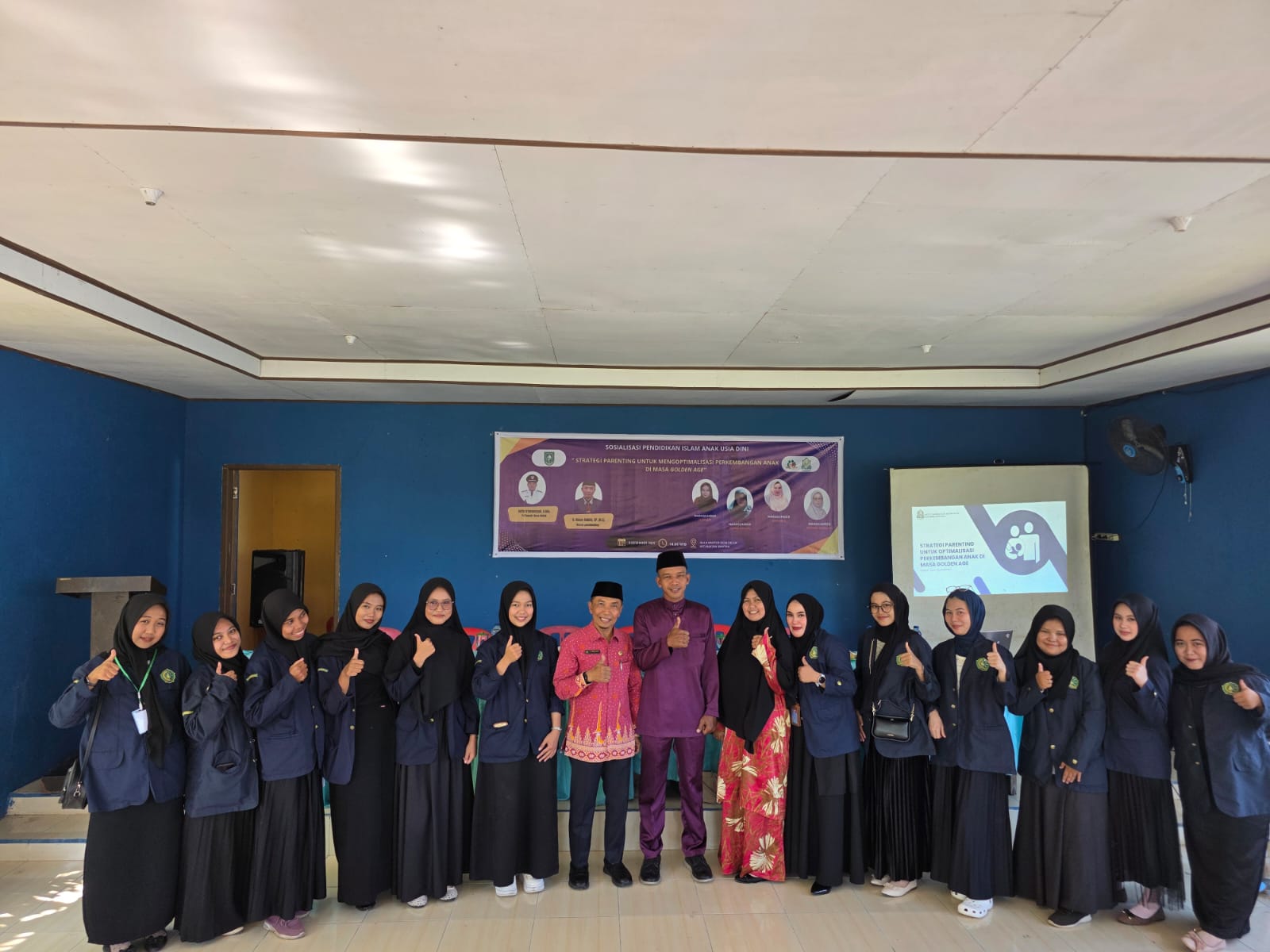 12 mahasiswi PIAUD bersama dosen pendamping, H. Imam Hakim, S.P., M.Si., membekali puluhan orang tua dengan strategi pengasuhan efektif di masa "Golden Age" anak.