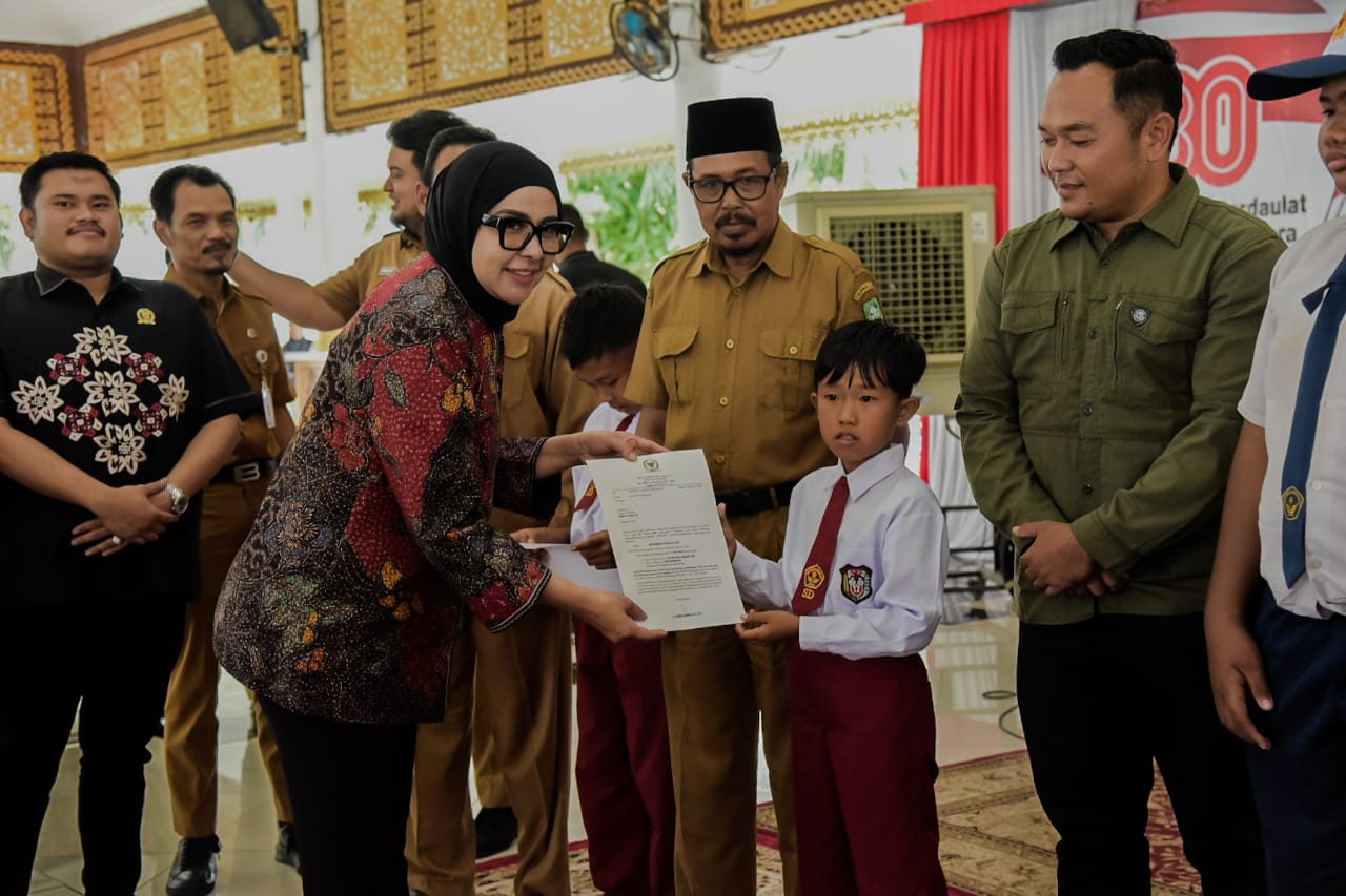 BENGKALIS - Sebanyak 768 orang pelajar se-Kecamatan Bantan terima program bantuan Beasiswa Program Indonesia Pintar (PIP) dari jalur aspirasi Hj Dewi Juliani anggota DPR RI Dapil Riau, Senin, 15 Desember 2025 di Wisma Daerah Sri Mahkota Bengkalis.