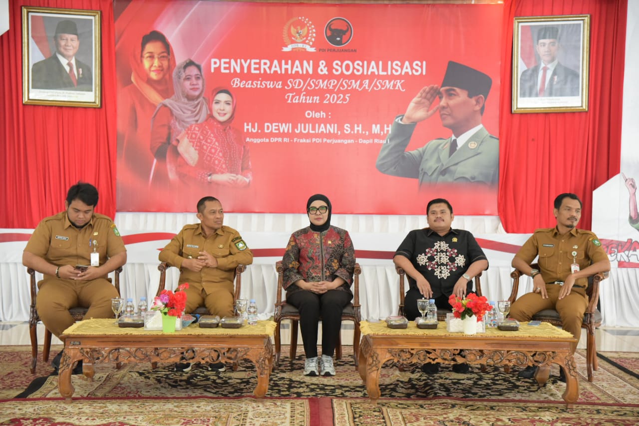 Hj. Dewi Juliani menyampaikan penyaluran beasiswa PIP jalur aspirasi ini merupakan bentuk komitmennya sebagai wakil rakyat dalam memperjuangkan peningkatan kualitas sumber daya manusia, khususnya di wilayah Riau.