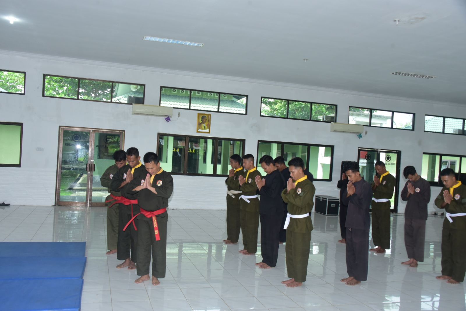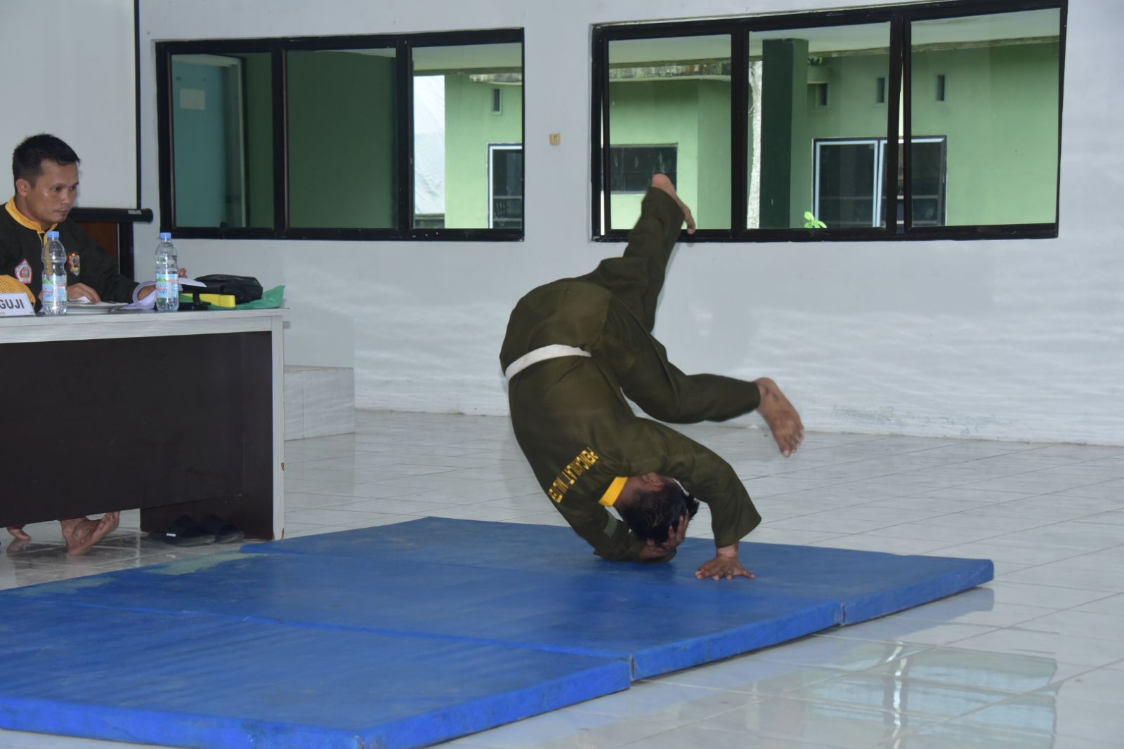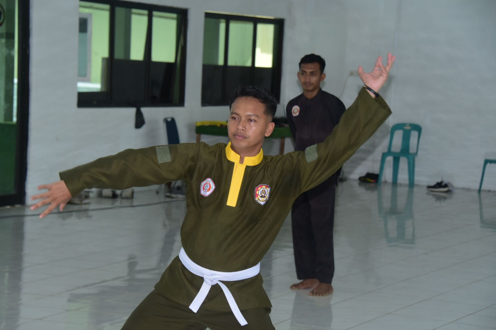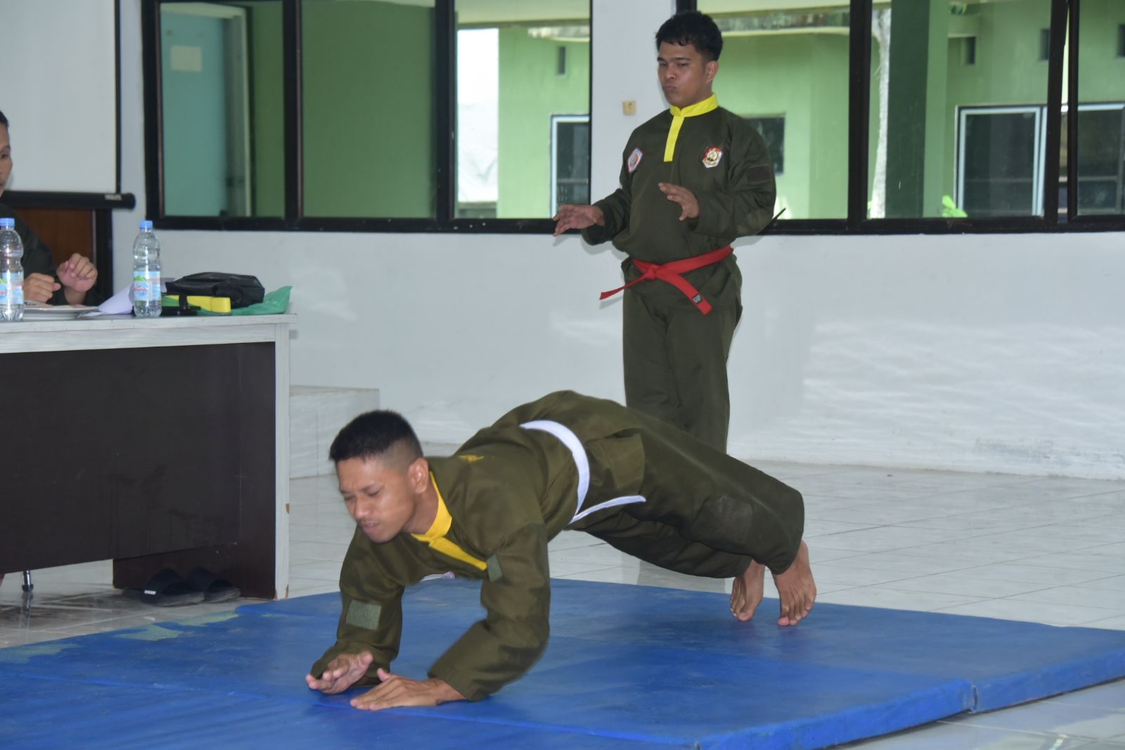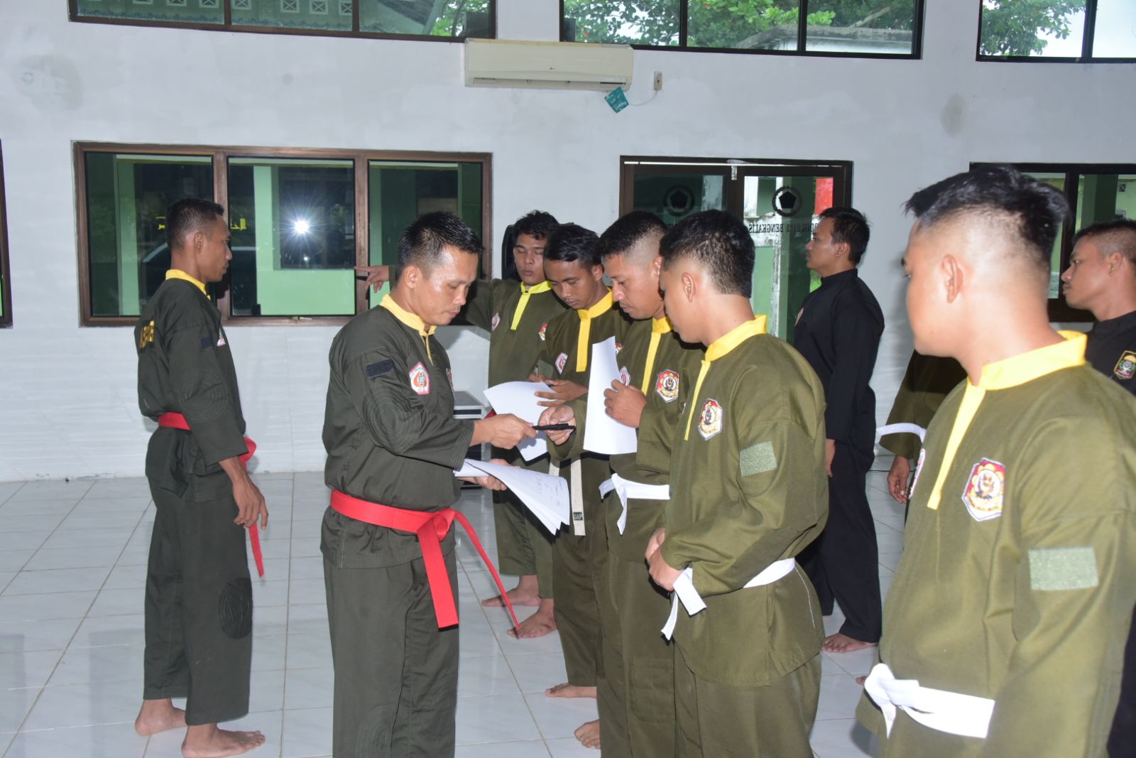 BENGKALIS - Komando Distrik Militer (Kodim) 0303 Bengkalis melakukan Ujian Kenaikan Tingkat (UKT) dari Sabuk Putih ke Sabuk Kuning, Pencak Silat Militer (PSM) tersebar Kodam XIX/Tuanku Tambusai, Kamis 18 Desember 2025, di aula Kodim 0303 Bengkalis.