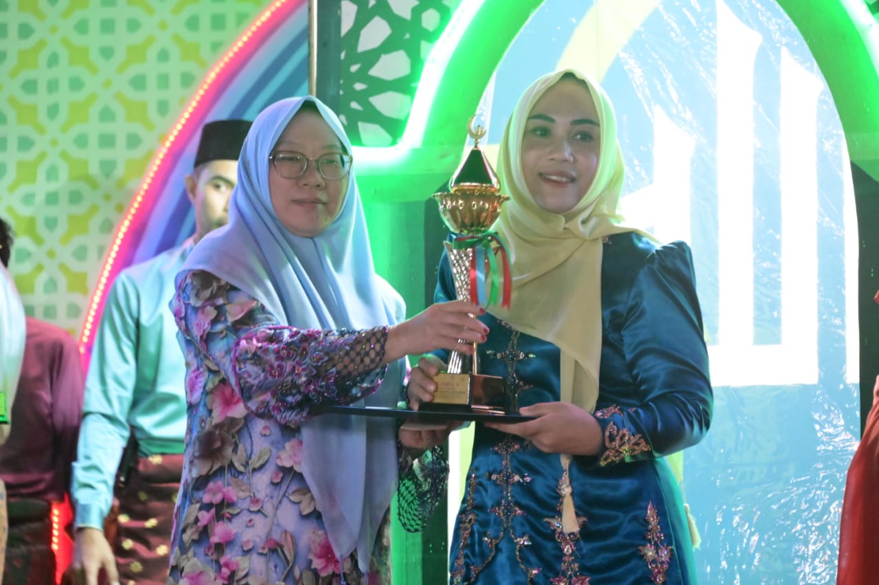 Berikut untuk piala dan piagam penghargaan bazar dan pameran MTQ diterima langsung Ketua Tim Penggerak PKK Kecamatan Mandau Dewi Asdinar, yang diserahkan Ketua Tim Penggerak PKK Kabupaten Bengkalis Hj. Siti Aisyah.#DISKOMINFOTIK.