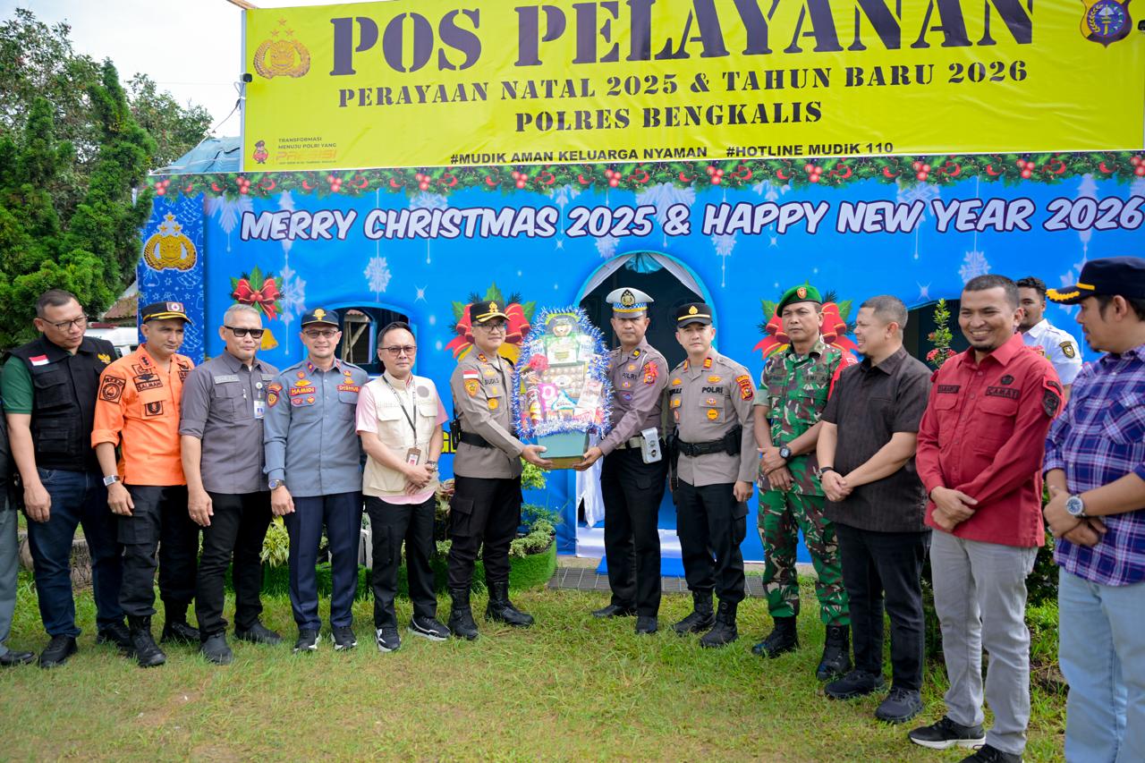 PINGGIR – Bupati Bengkalis, Kasmarni, diwakili Sekretaris Daerah (Sekda), dr. Ersan Saputra TH, melakukan kunjungan ke Posko Pengamanan Natal dan Tahun Baru (Nataru) 2026, yang berada sekitar 500 meter setelah Exit Tol Balai Raja, Kecamatan Pinggir, Kamis 24 Desember 2025.
