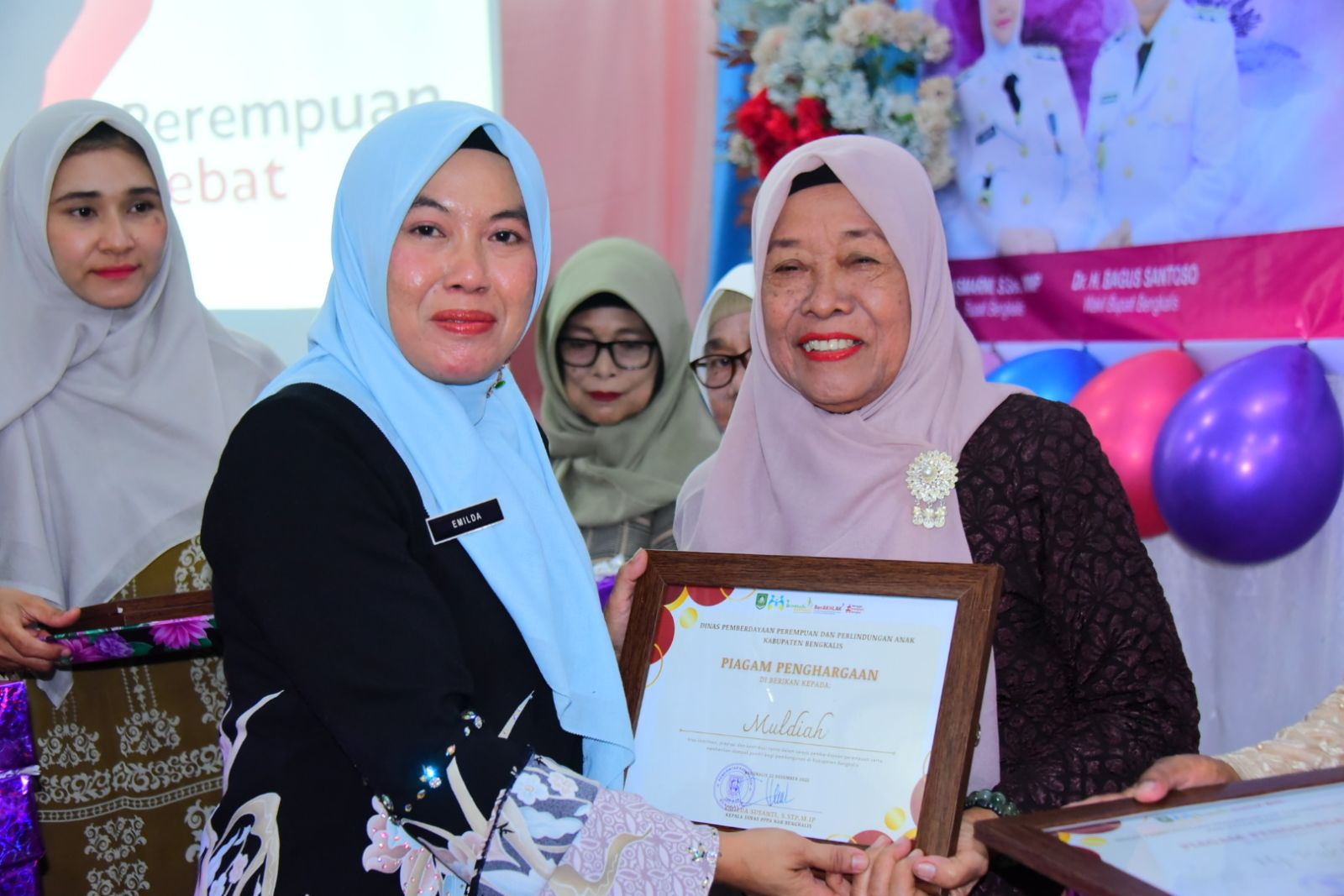 Penghargaan tersebut diserahkan langsung Kepala Dinas DPPPA Kabupaten Bengkalis pada rangkaian Peringatan Hari Ibu ke-97 Tahun 2025, Ahad, 28 Desember 2025 di gedung GOW Bengkalis sebagai bentuk apresiasi atas peran strategis perempuan dalam menjaga nilai sosial, pendidikan, kesehatan, serta penguatan ketahanan keluarga dan ekonomi masyarakat di Negeri Junjungan.