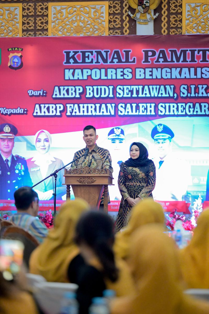Pada kesempatan yang sama, Bupati Kasmarni mengucapkan selamat datang kepada AKBP Fahrian Saleh Siregar sebagai Kapolres Bengkalis yang baru.