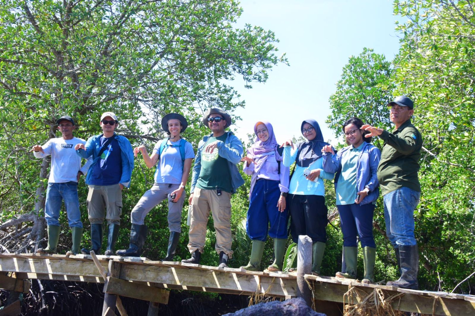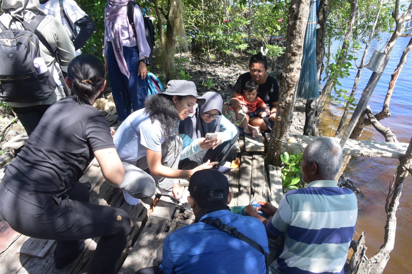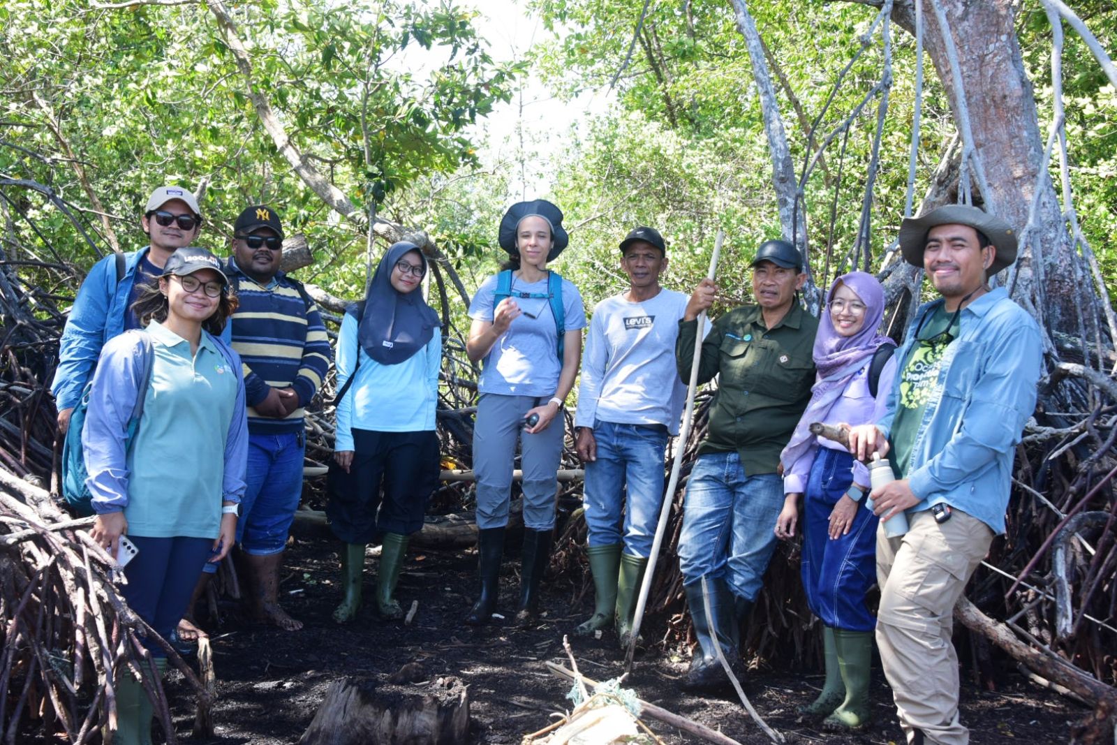 Turut mendampingi kegiatan peninjauan tersebut, Pj. Kepala Desa Teluk Pambang, YKAN, LPHD, dan Kelompok Mangrove Teluk Pambang.