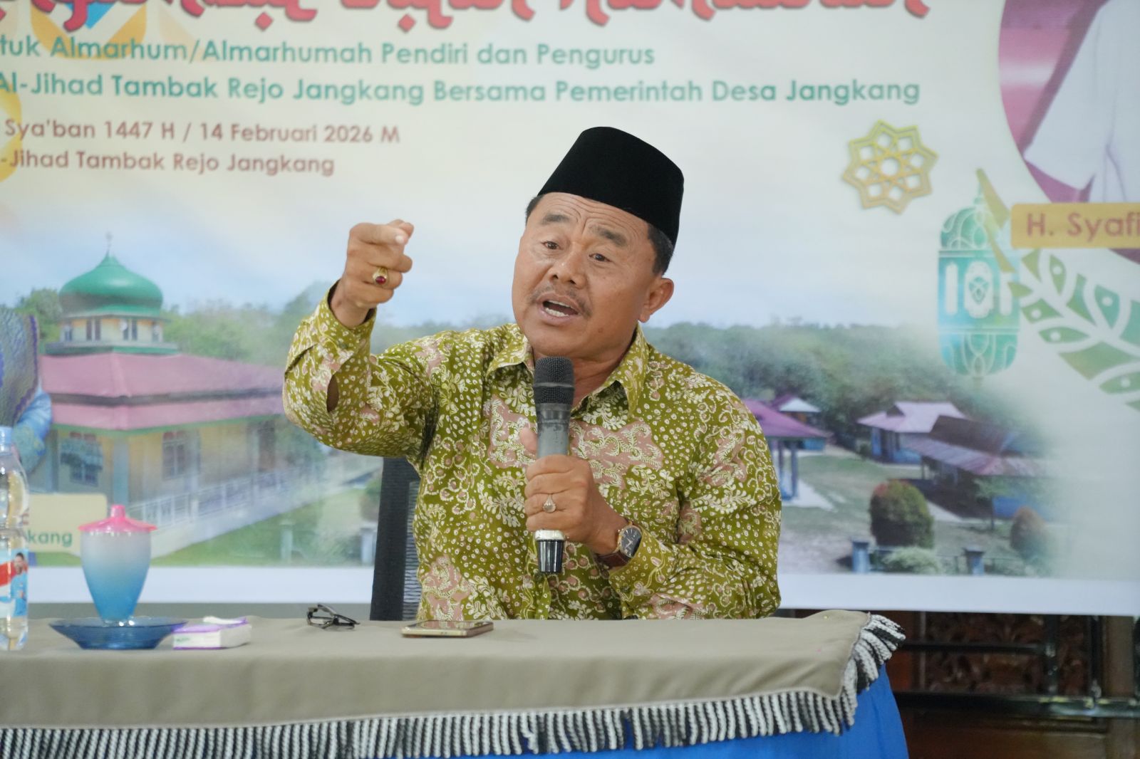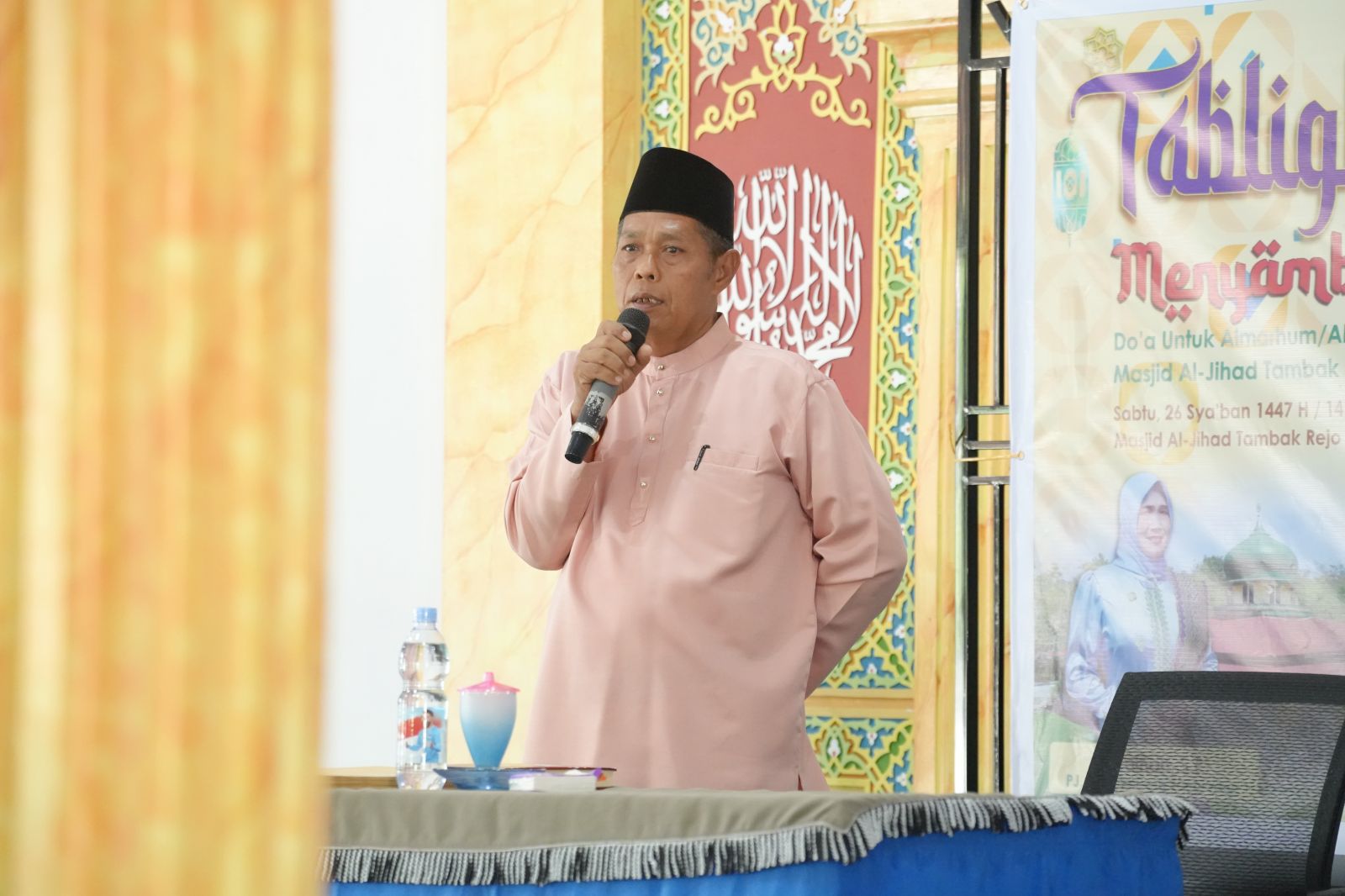 BANTAN - Menjelang datangnya bulan suci Ramadhan, pengurus Masjid Al-Jihad Desa Jangkang menggelar kegiatan tabligh akbar, tahlil dan doa bersama untuk mengenang serta mendoakan para pendiri masjid, Sabtu 14 Februari 2026 di Dusun Tambak Rejo, Desa Jangkang, Kecamatan Bantan.