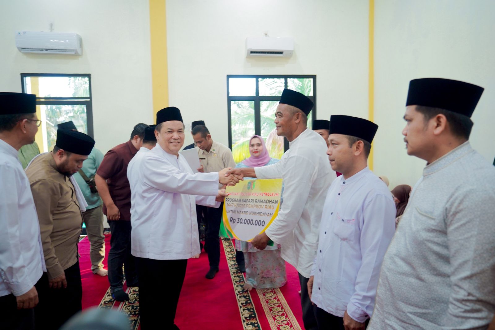 Pada kesempatan tersebut juga dilaksanakan penyerahan berbagai bantuan dan santunan kepada masyarakat serta pengurus masjid yang diserahkan langsung oleh Plt. Gubernur Riau didampingi Bupati Bengkalis.