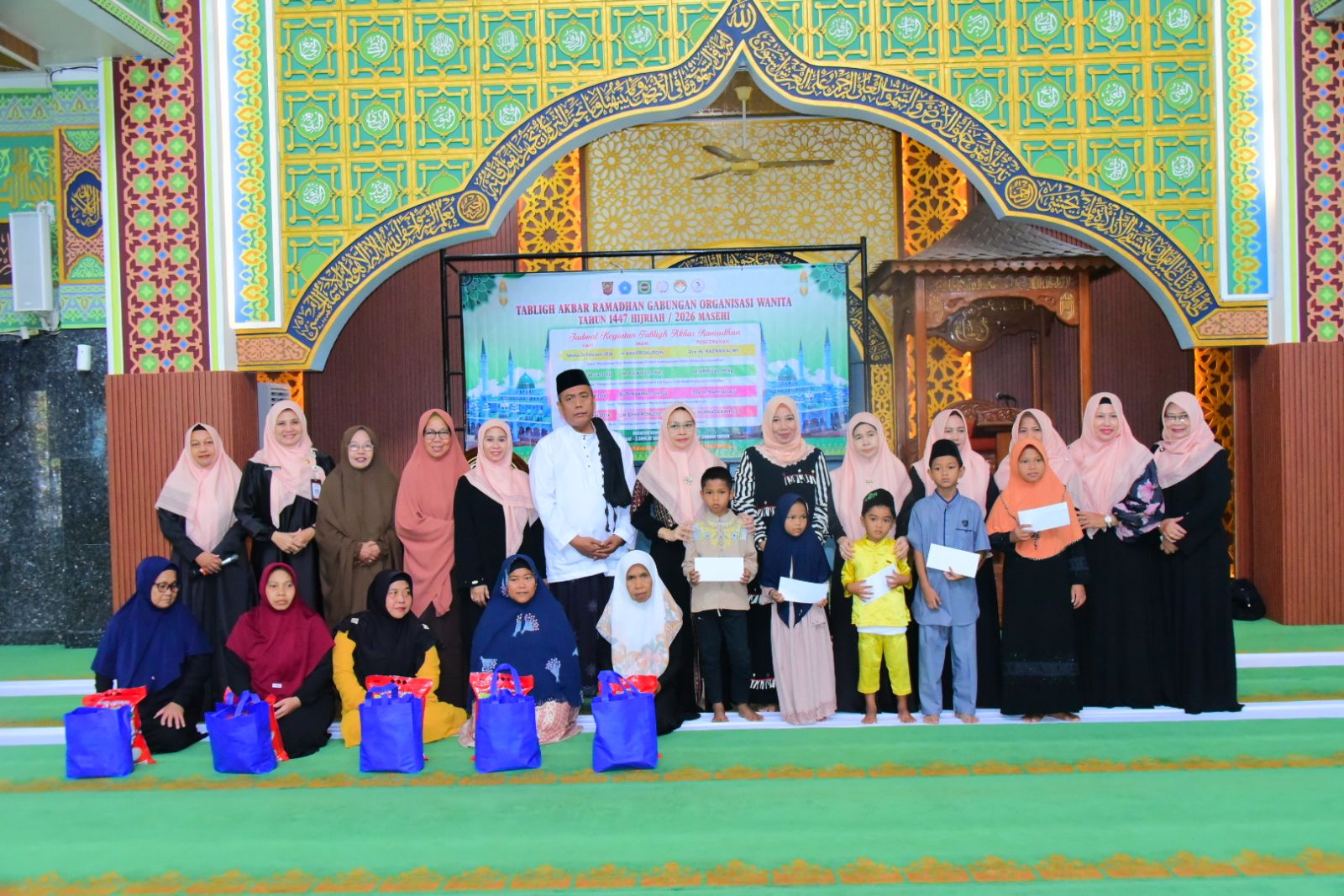 BENGKALIS — Tabligh akbar Ramadan yang diselenggarakan Gabungan Organisasi Wanita (GOW) Kabupaten Bengkalis sesi tiga berlangsung khidmat di Masjid Istiqomah Bengkalis Rabu, 4 Maret 2026. Selain tausiah dan doa bersama, kegiatan ini juga dirangkaikan dengan penyerahan bantuan santunan kepada 30 anak yatim dan paket sembako untuk 30 kaum duafa sebagai bentuk kepedulian sosial di bulan suci.