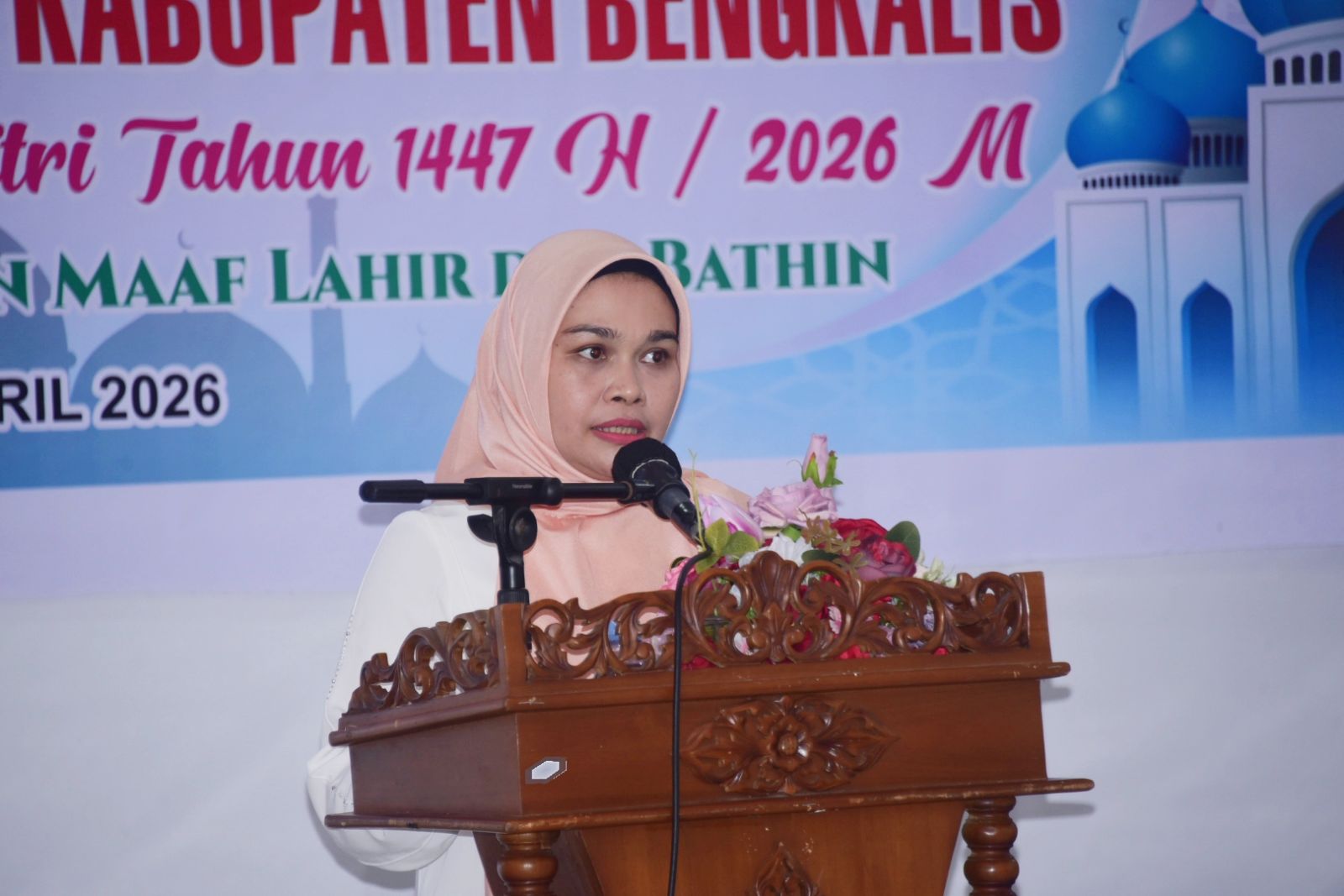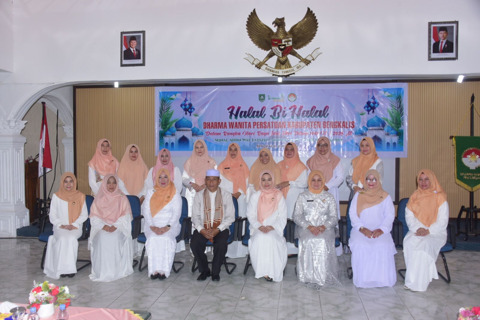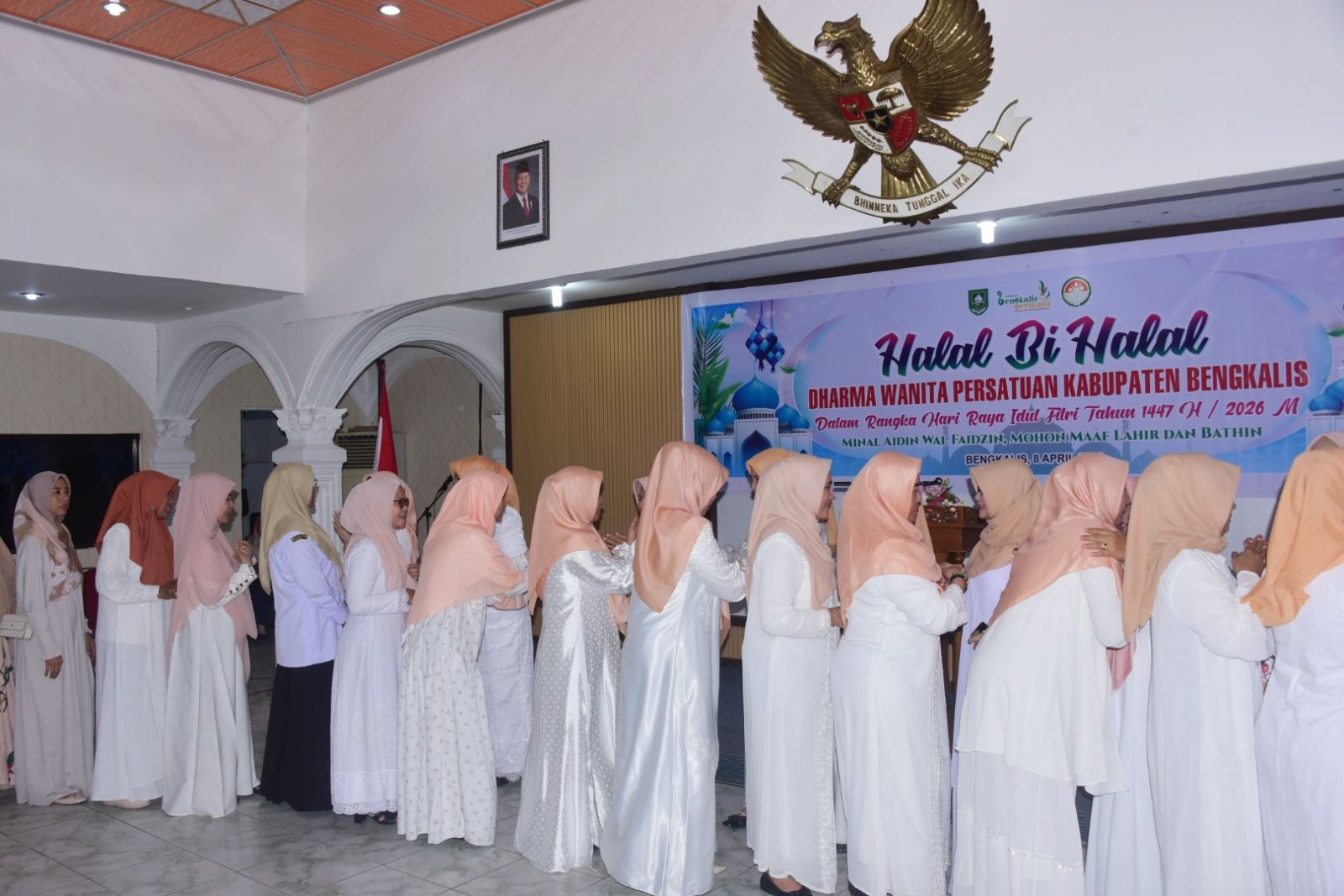 BENGKALIS - Dalam rangka Hari Raya Idul Fitri 1447 Hijriah/2026 Masehi Dharma Wanita Persatuan (DWP) Kabupaten Bengkalis menggelar Halal Bihalal sekaligus pertemuan bulanan, Rabu 8 April 2026, di gedung Daerah Bengkalis.